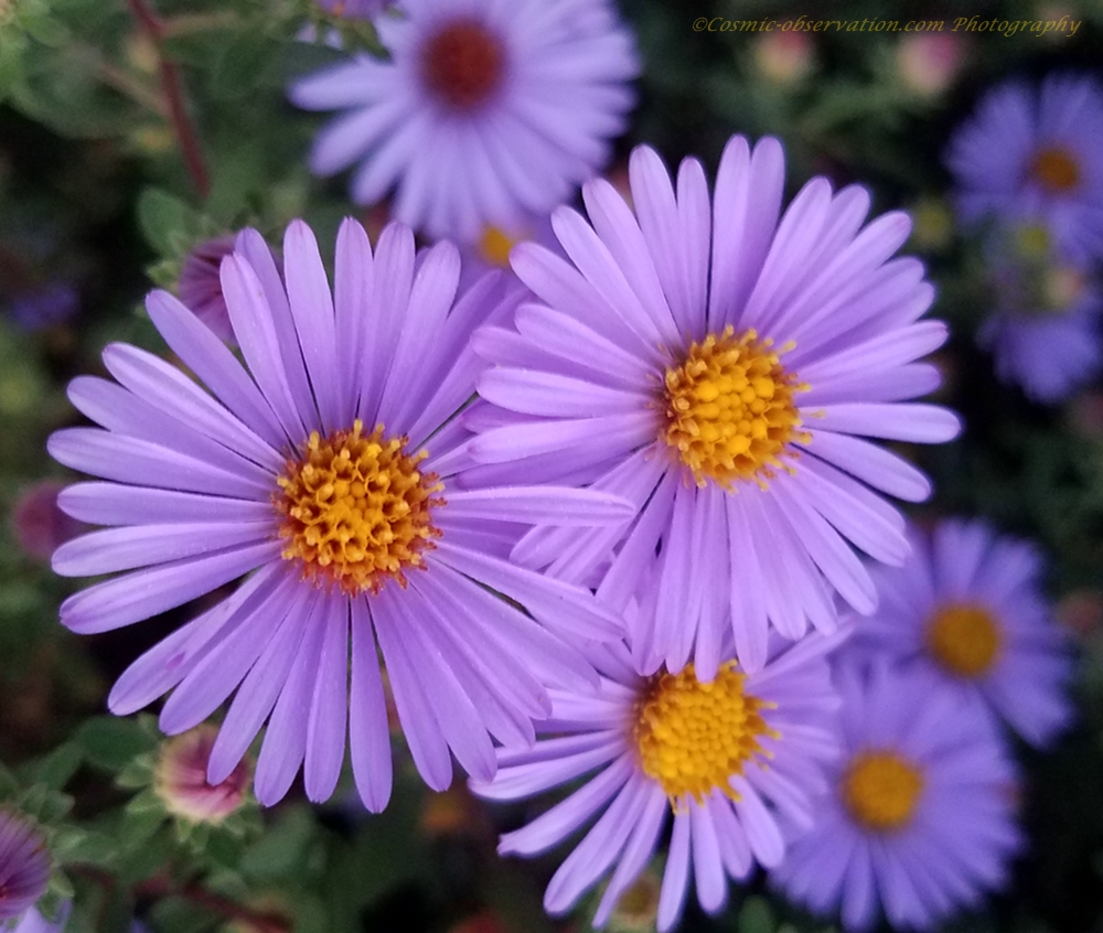 These cutie-pies are in the same family as these big daisies and these little daisies. I suspect this is in the Michaelmas group and possibly an Algar’s Pride. ~Vic