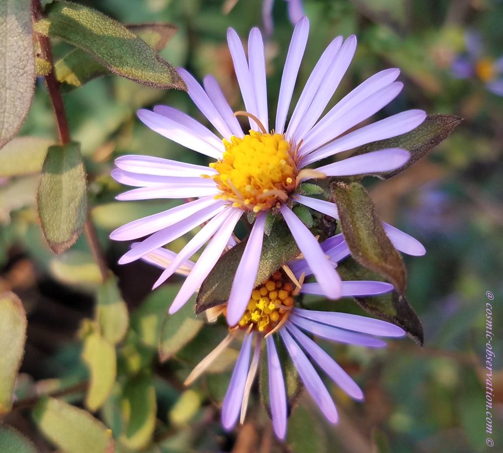 These cutie-pies are in the same family as these big daisies and these little daisies. I suspect this is in the Michaelmas group and possibly an Algar’s Pride. ~Vic