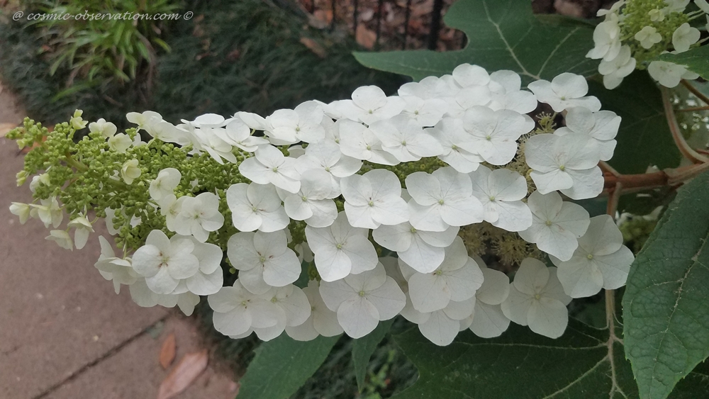 This entry was posted in Photography, Picture of the Day and tagged 2019, american photography, camera hound, camera nut, cameraphone, cosmic-observation photography, evening walk, flower, flower image, flower photo, flower photograph, flower picture, flower shot, flower snapshot, hillsborough photography, hydrangea, hydrangea bush, image, may 20, north carolina photography, oak-leaved hydrangea, oakleaf hydrangea, photo, photo of the day, photograph, photographer, picture, POTD, quercifolia, samsung S7, shutterbug, snapshot, stupidphone, white flowers, white hydrangea.